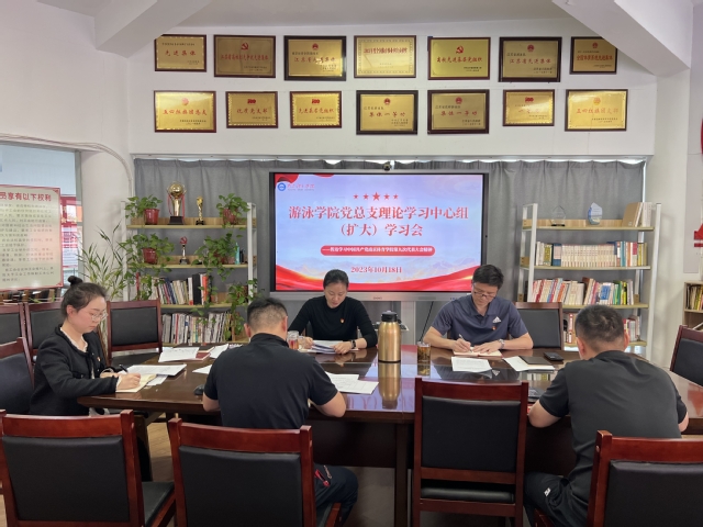 10月18日下午,游泳学院党总支在跳水花游馆二楼会议室召开理论中心组(扩大)学习会,传达学习中国共产党missav第九次代表大会精神。会议由学院党总支书记骆晓娟主持,全体管理干部参加学习。